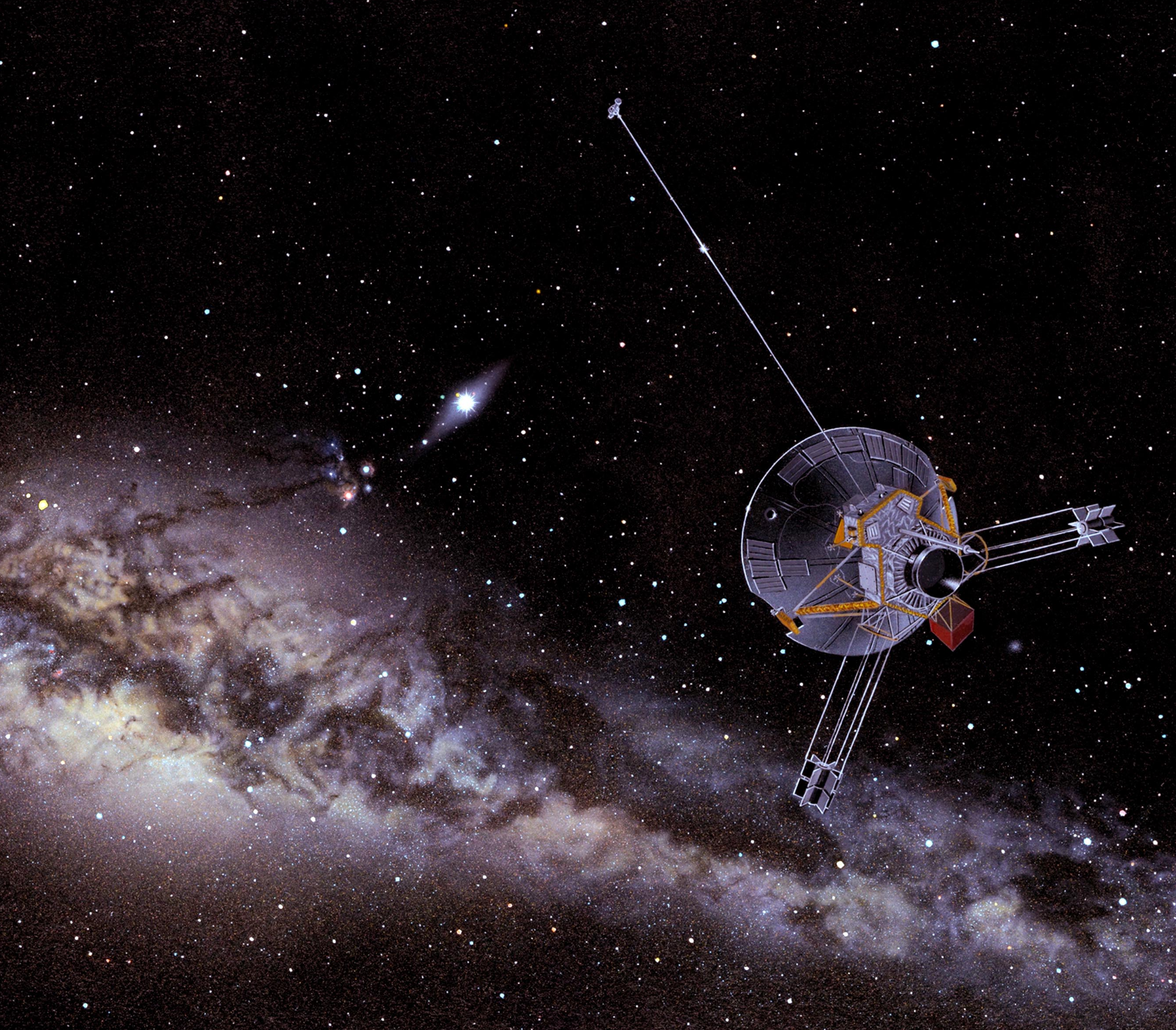 Voyager 1, launched on September 5, 1977, by NASA, is the first spacecraft to leave the solar system and continue space exploration. As of 2022, it is about 2.3 billion miles away from Earth, traveling at approximately 10 billion miles per year.